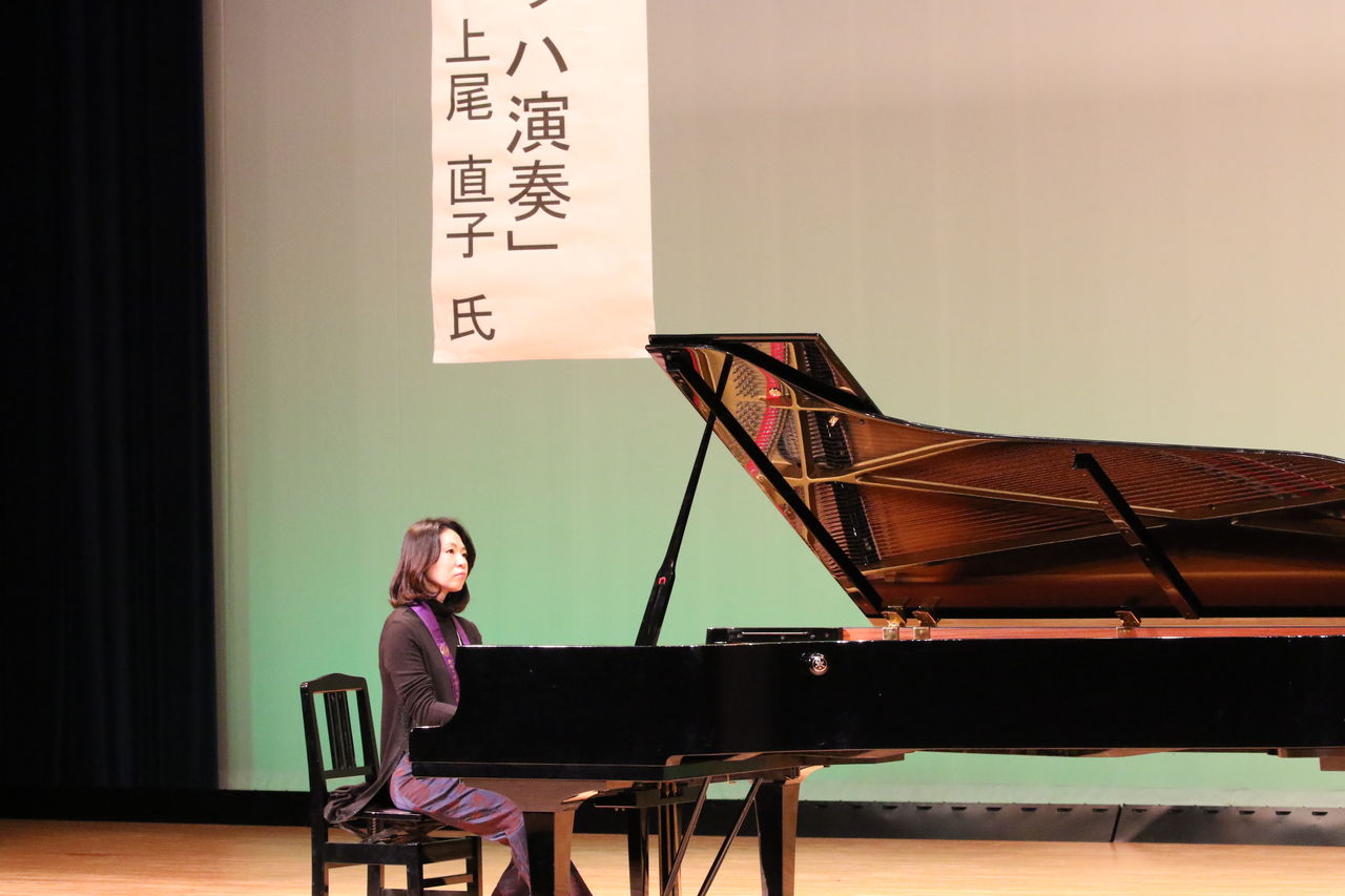 ピアノコンサートでは「お遍路バッハ実行倶楽部」上尾直子代表によるピアノ演奏もあり厳粛な雰囲気を会場内に漂わせていました。